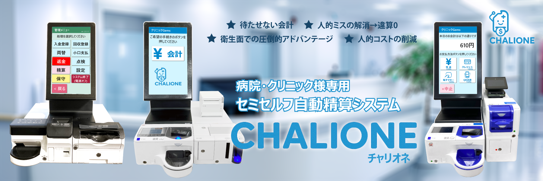 2023.11.07 2020.06.26 ソリューション スタンダード版 アパレル版 社員食堂版 医療精算機 新着情報 2025年5月21日 NEW! IT導入補助金2025のIT導入支援事業者に採択されました 2025年4月1日 医療精算システムCHALIONE(チャリオネ)の資料を公開いたしました 2023年2月14日 適格請求書発行事業者登録番号のお知らせ 2021年7月13日 医療精算システムの資料を公開いたしました 2020年6月1日 株式会社ジェムス設立いたしました